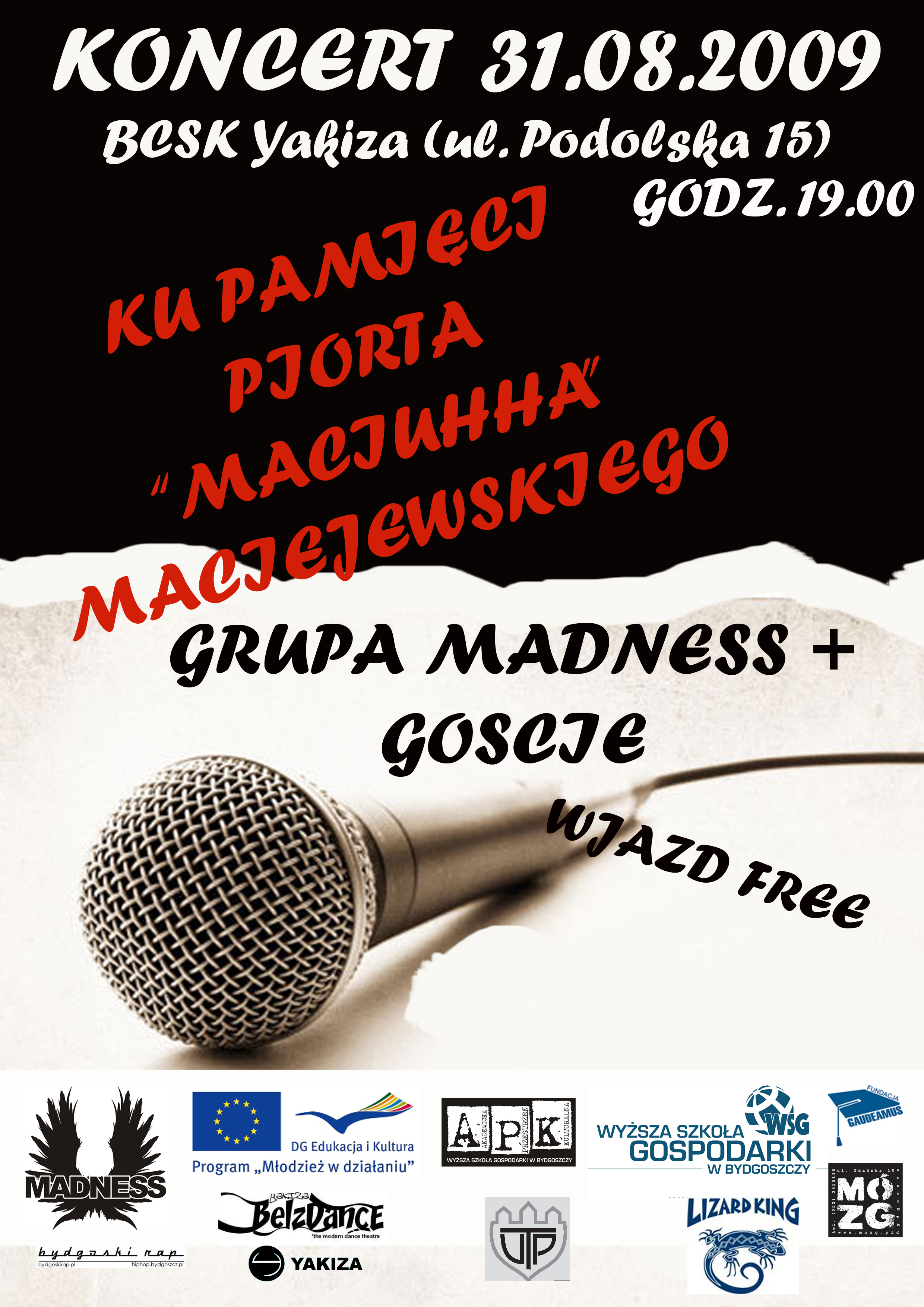 W projekt zaangażowały się: Fundacja GAUDEAMUS, Akademicka Przestrzeń Kulturalna, Wyższa Szkoła Gospodarki <patronat>, Uniwersytet Techniczno-Przyrodniczy, Zespół Placówek Szkolno-Wychowawczych przy ul. Fordońskiej 272, Ośrodek Szkolno-Wychowawczy nr 1 im. Braille’a, MDK nr 4 w Bydgoszczy, a także klub Mózg i Lizard King. Patronat medialny objął bydgoski rap www.bydgoskirap.pl