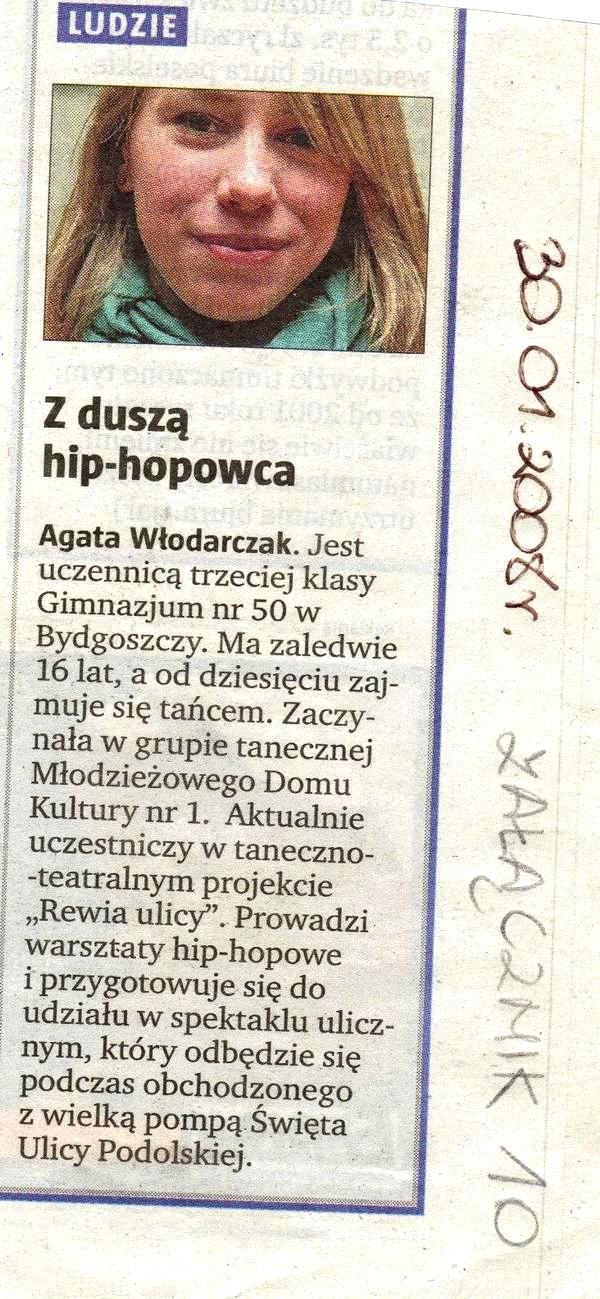 REWIA ULICY- nowatorski projekt taneczno-teatralny realizowany w Bydgoszczy od października 2007 do maja 2008r ze środków europejskich Programu Młodzież w Działaniu. Zapisy do końca września na adres: joannabelzyt@o2.pl